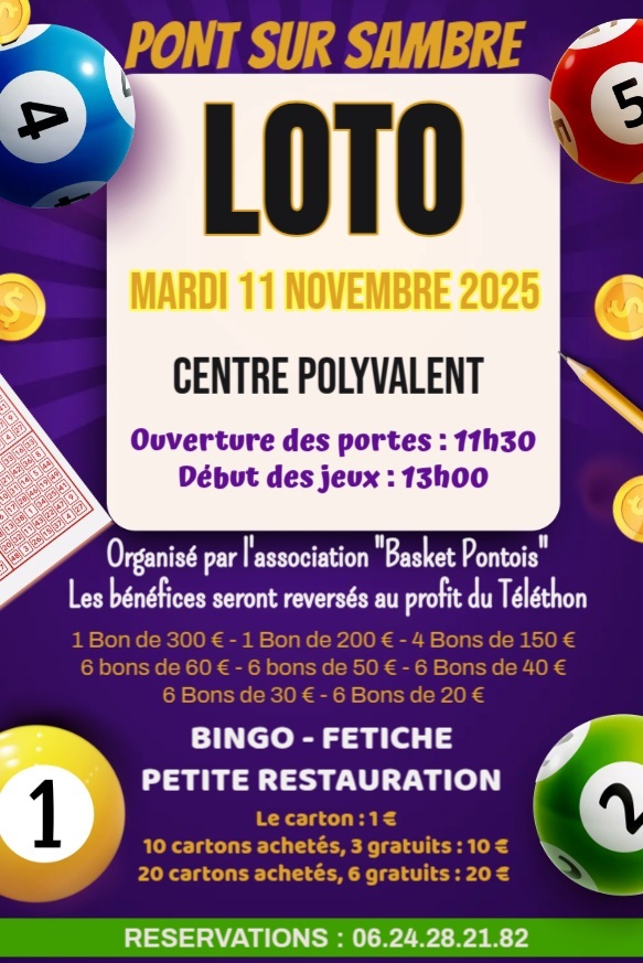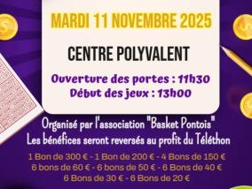 Ce mardi 11 novembre, le basket ball pontoise organise un loto au profit du Téléthon.