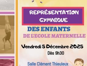 Les enfants de l'école maternelle vous invitent à une représentation gymnique le vendredi 5 décembre dès 9h30 à la salle des sports.